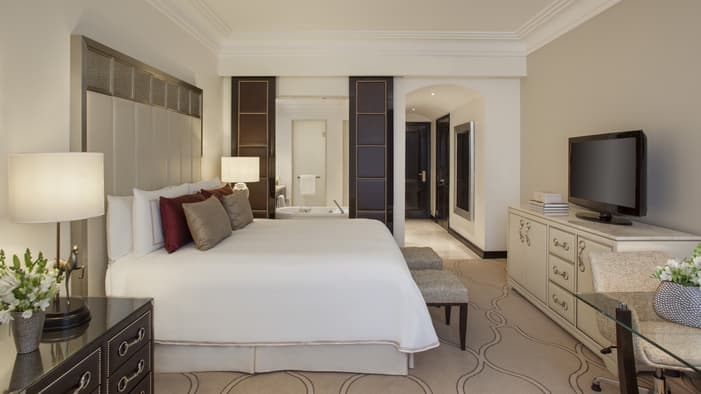 Natural light fills this spacious and modern room, featuring Polo-inspired furniture and high ceilings. Sliding leather doors to the bathroom create a seamless flow. E-Lounge accommodations are located on a dedicated floor with exclusive access to the E-Lounge, our intimate lounge featuring a balcony, refreshments and additional perks.