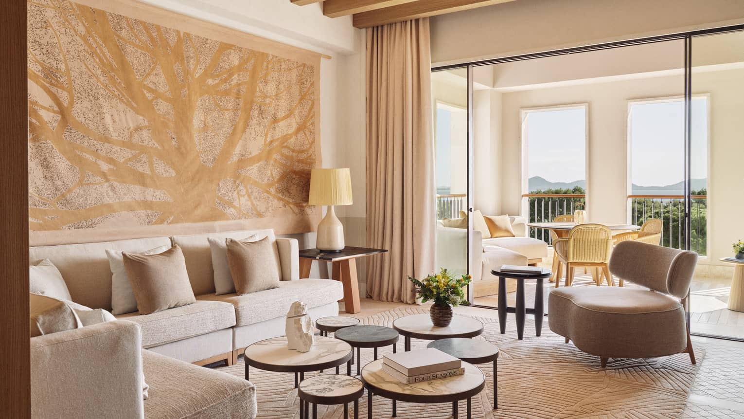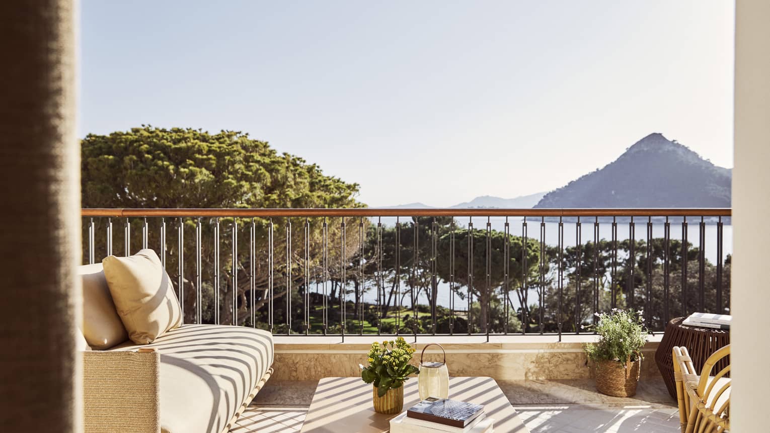 Capturing all the beauty of Mallorca, this one-of-a-kind Formentor Suite on our highest level features walls of windows that slide back for fresh breezes and unobstructed sea views.