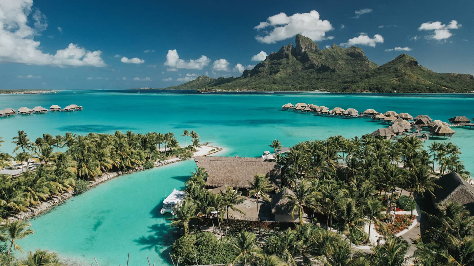 Spacious overwater suites meet thrilling underwater adventure at this idyllic South Pacific resort.
