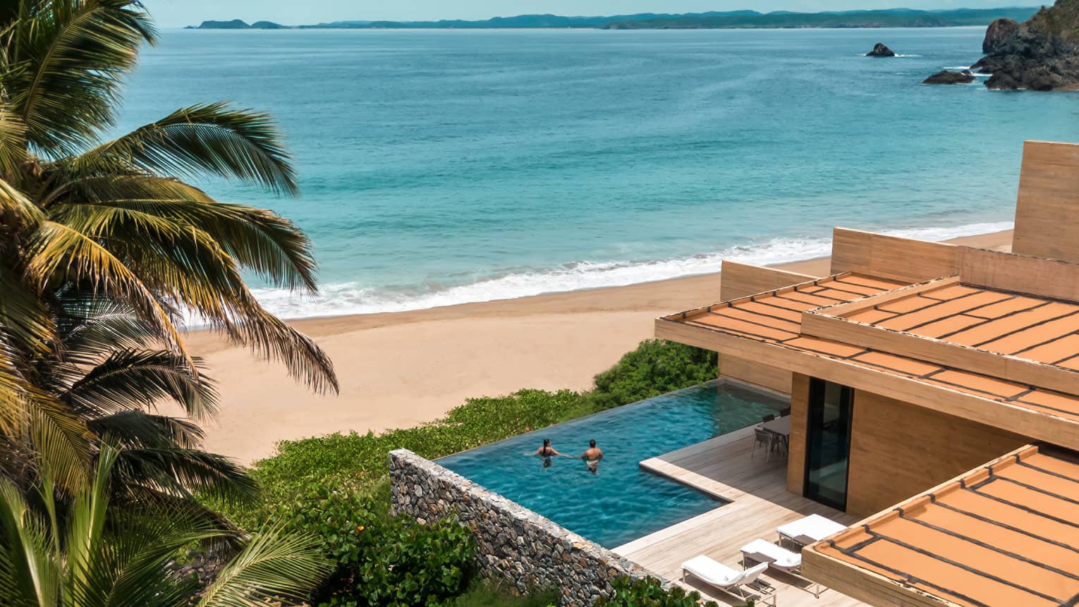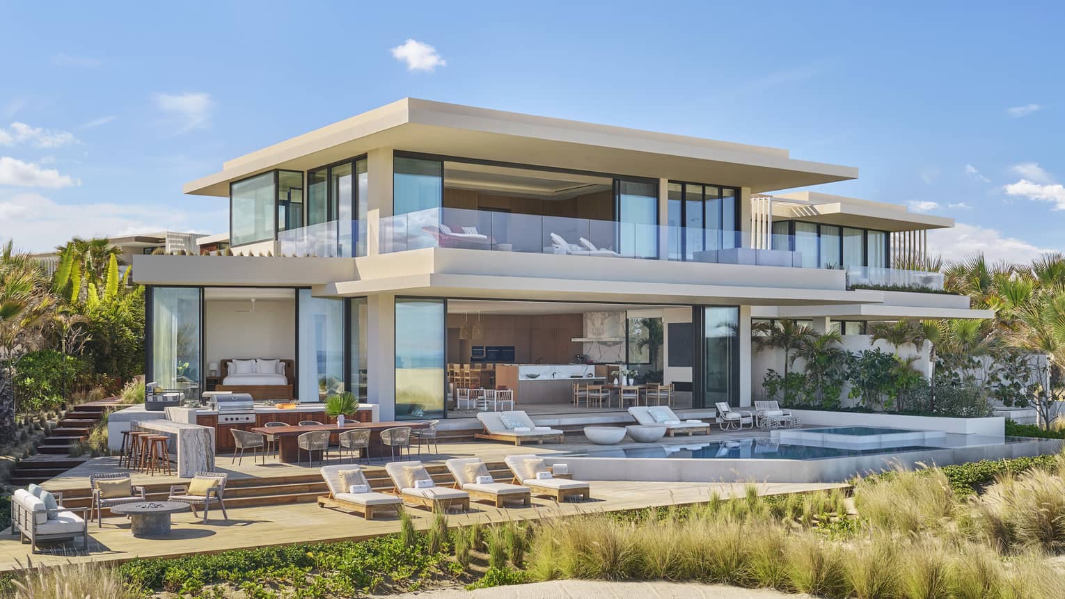 With private walk-out access to the beach, the Pacifico Villa boasts an infinity pool with unobstructed ocean views as well as spacious living and dining areas that open to an expansive furnished terrace.