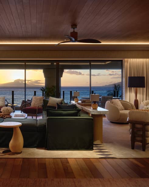 Welcome to the Lokelani Presidential Suite. Your indoor-outdoor beach retreat with sweeping ocean views. Featuring three bedrooms, two living rooms, a dining area, and a private garden, it’s perfect for family or friends.