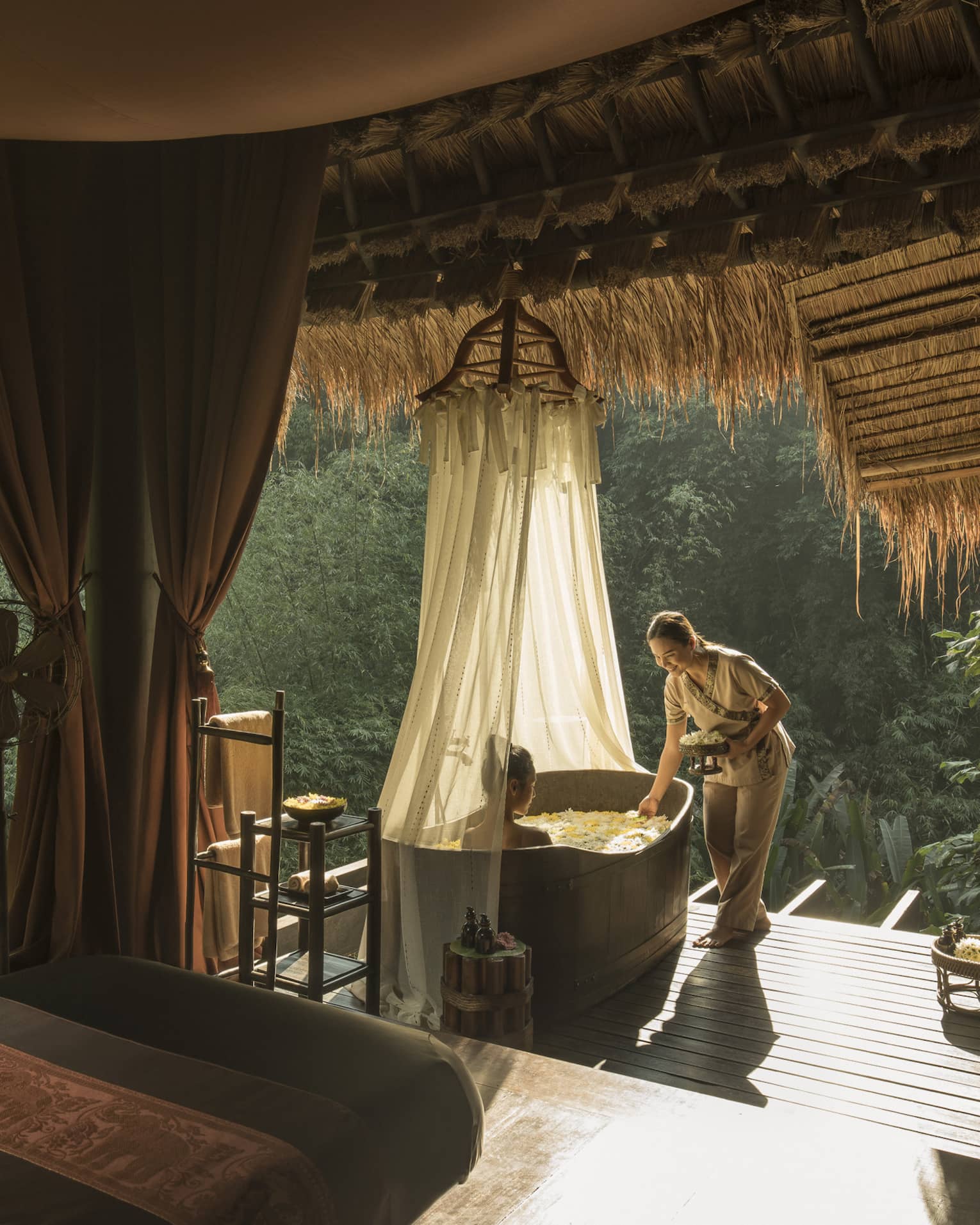 Rise with the sun from our legendary Explorer's Lodge, a luxurious jungle-inspired retreat complete with an enchanting lamplit veranda and private infinity pool overlooking an endless bamboo forest.