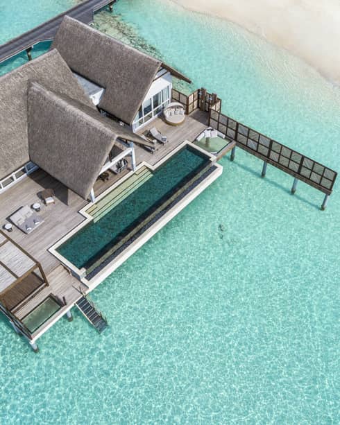 Treat yourself to the unspoiled beauty of Maldives from our iconic Sunrise Water Villa where you can dive directly from your bedroom into a private infinity pool or descend the steps into crystal clear ocean waters.