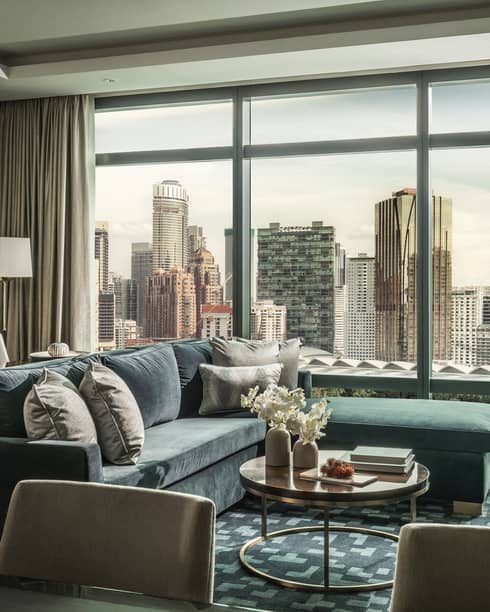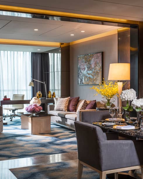 Spread out in style in the Two-Bedroom Kyoto Residence, offering elegance and luxury. Framed by floor-to-ceiling views of the city skyline, your home away from home features two private balconies and a dining room that seats six.