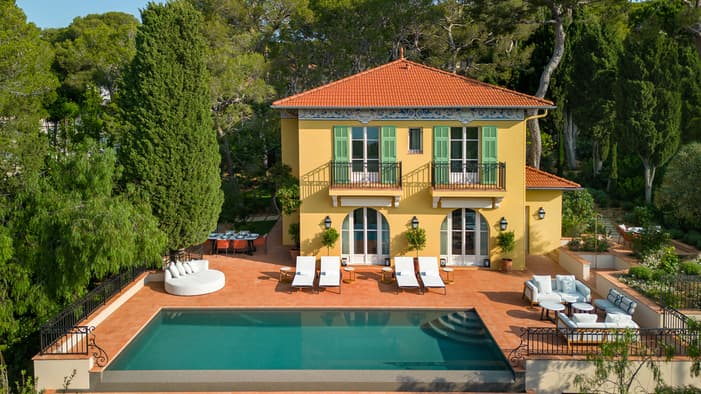 Tucked away among the pines is your own private villa on the French Riviera. With a full staff on hand to attend to the details, your family or group of friends can enjoy total relaxation, spending days lounging by the pool, sunbathing in the gardens, taking afternoon naps in custom king beds and enjoying sunset aperitifs every evening on the rooftop terrace.2 / 4