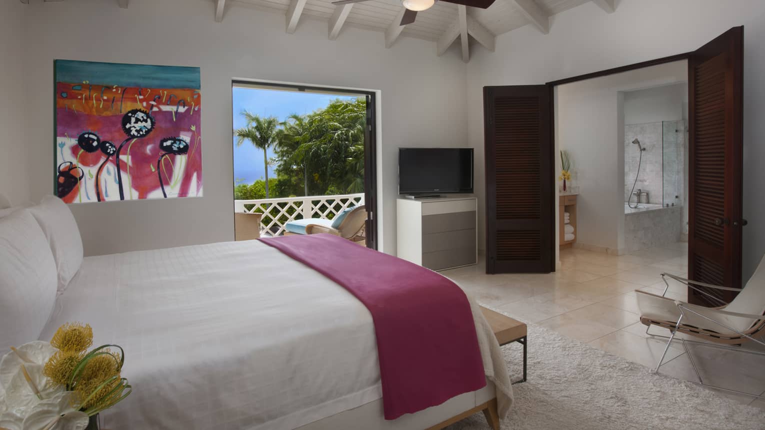 Take in breathtaking views of the Nevis Peak from your balcony or admire local artwork on the walls.