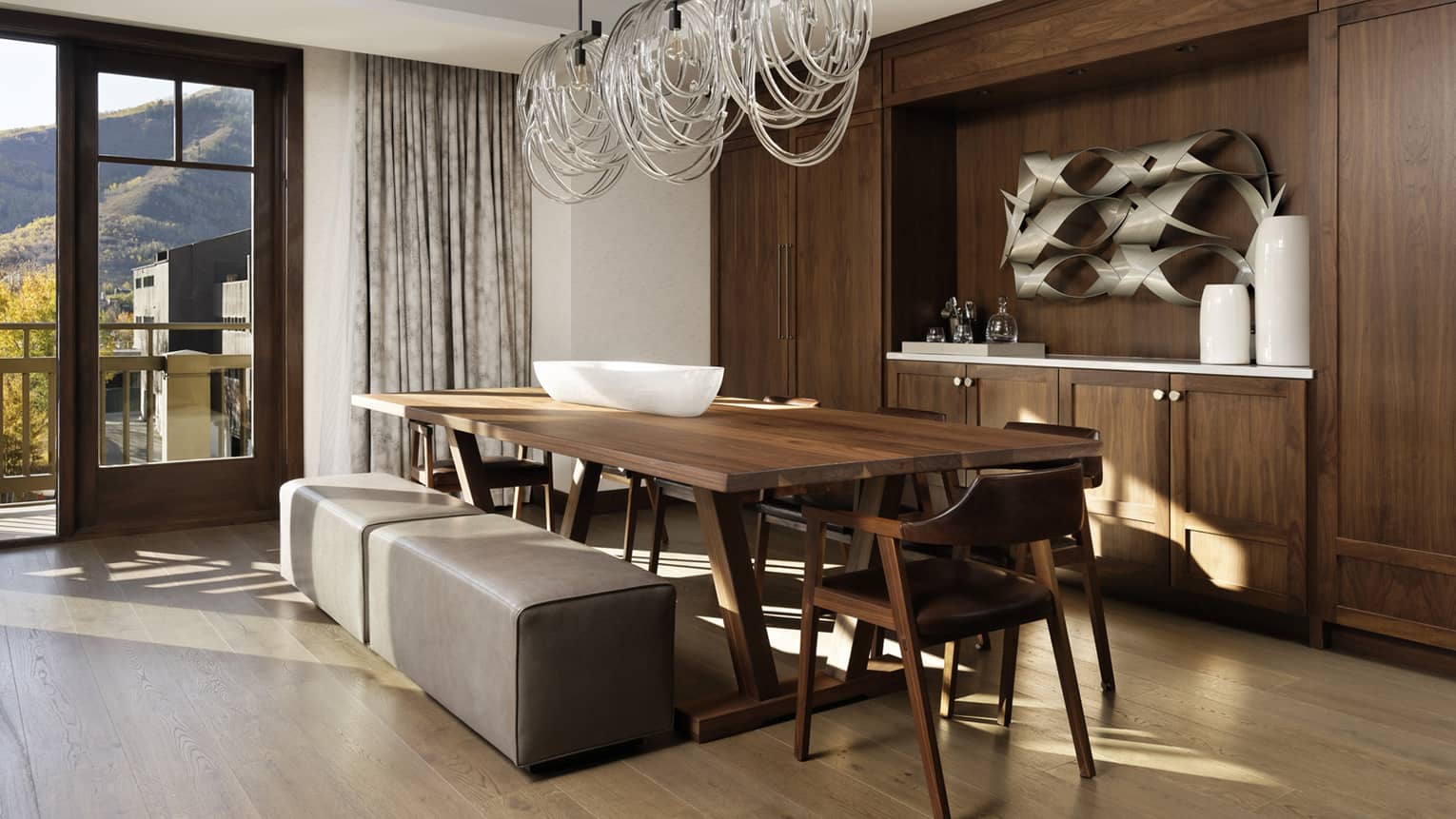 Enjoy all the comforts of home in this unique three-bedroom, which features a designer kitchen that opens to warm dining, living and family room wrapped in modern alpine design with a western touch.