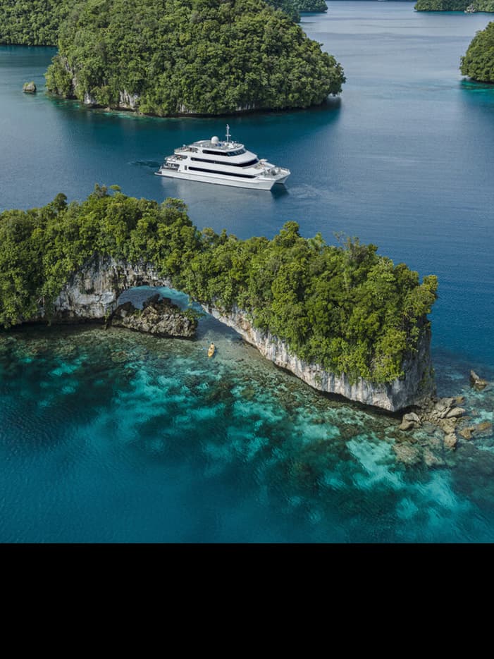 Journey into Palau – named one of “The 25 Best Places to Go in 2025” by "Condé Nast Traveler" – aboard our luxury floating Resort to discover one of the world's greatest marine marvels. Weave between UNESCO World Heritage Islands and breathtaking lagoons, home to harmless jellyfish and elusive mandarin fish. Dive or snorkel the astonishing reefs of Blue Corner and German Channel. Absorb fascinating history and connect with the Palauans’ love of music and deeply held value of “omengull” (respecting all and everything).