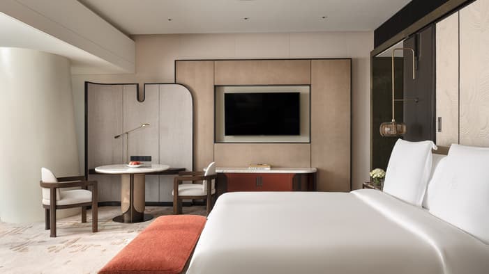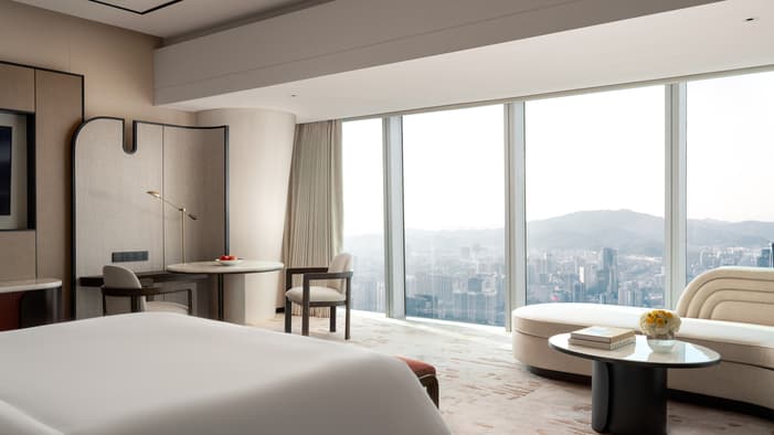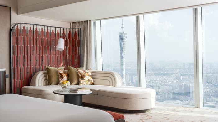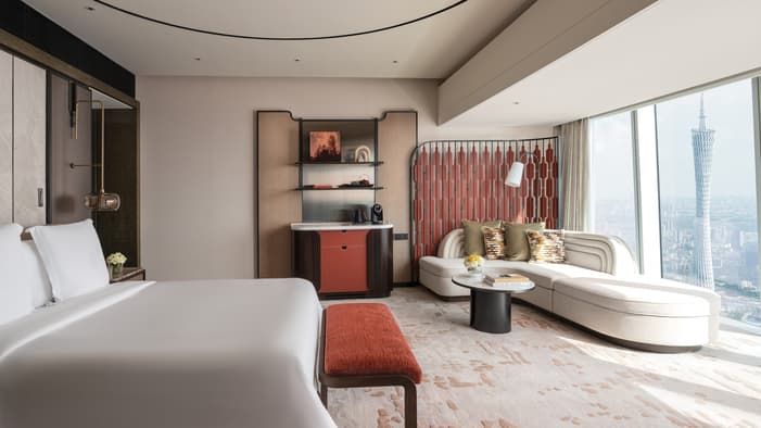Where clouds, mountains and the Pearl River meet the sky, our Hotel’s reimagined rooms bring Lingnan heritage into a modern sanctuary, setting a new design benchmark for the city’s skyline.1 / 4