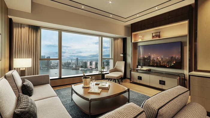 Gaze out to a harbour view from your harbourfront suite, where floor-to-ceiling windows reveal a panorama of Victoria Harbour and Kowloon. Designed for both business and leisure, these spacious rooms feature a separate king bedroom, a generous living area, a dining area and a large walk-in closet. Whether you’re travelling with family or seeking extra space to unwind, enjoy elevated comfort – plus exclusive access to the Executive Club throughout your stay.