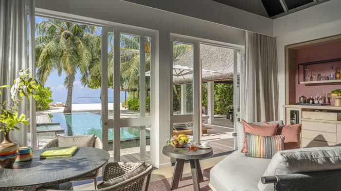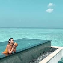 Qualche vasca di prima mattina nella piscina a sfioro principale, l’unica di dimensioni olimpiche delle Maldive, più tardi un tuffo rinfrescante nella vicina piscina con acqua di mare, infine il tramonto sulla laguna alla piscina Blu. E intanto, la piscina nel Club per bambini, di forma irregolare e poco profonda, farà giocare e divertire i più piccoli per ore.