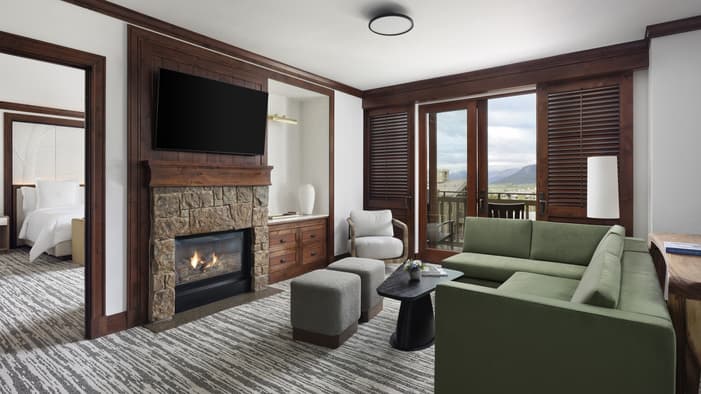 Take in awe-inspiring views of Jackson Hole Mountain Resort during breakfast on your private terrace before heading out for the day's adventures. Enjoy the privacy of a separate bedroom and living area, and stargaze on the private balcony featuring a table and two chairs. Other features include a large walk-in closet and dining table for four.