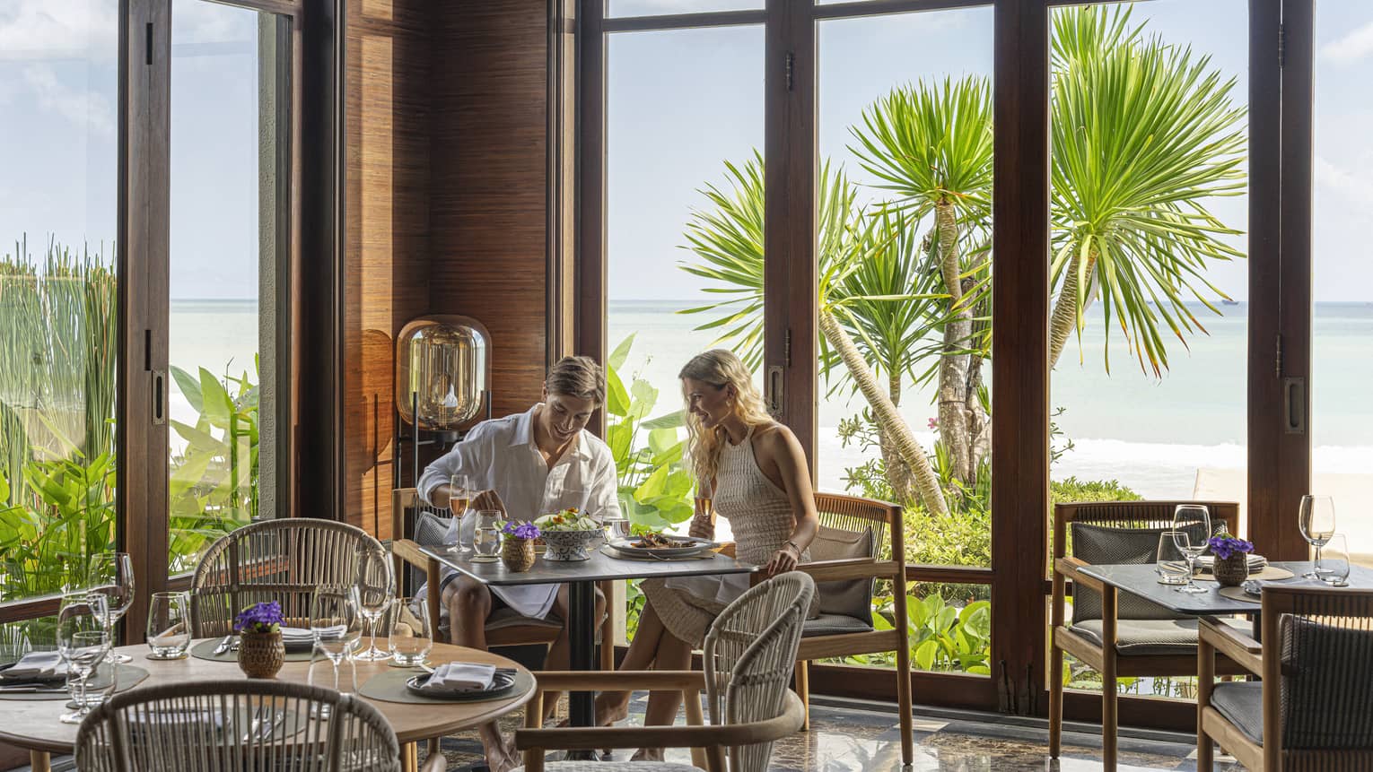 Inspired by Jimbaran’s traditional seafood barbecue culture, our nightly dinner menu presents bold, fresh flavours to complement the fiery sunset views. Each dish – even dessert – is layered with an element of wood, smoke or fire. By day, a lighter beach club selection or Bali Sunday brunch is perfect for all-day relaxation by one of Bali’s longest beachfront pools.