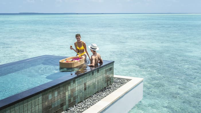 Take in stunning sunrises as you lounge in your overwater nets, private pool or from high in your sea-gazing loft. With a spacious bedroom, living area and steps leading to the crystal lagoon – where a new sea wall keeps currents at bay and enables safe swimming year-round – these east-facing villas immerse you in sweeping serenity.