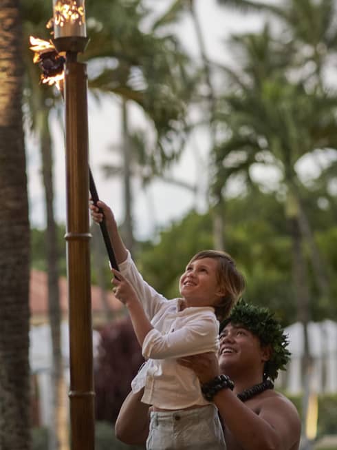 This sunset ritual at Four Seasons Maui is a favorite of many guests. We welcome the evening with a blowing of the pu (conch shell) and torch lighting throughout the Resort grounds.