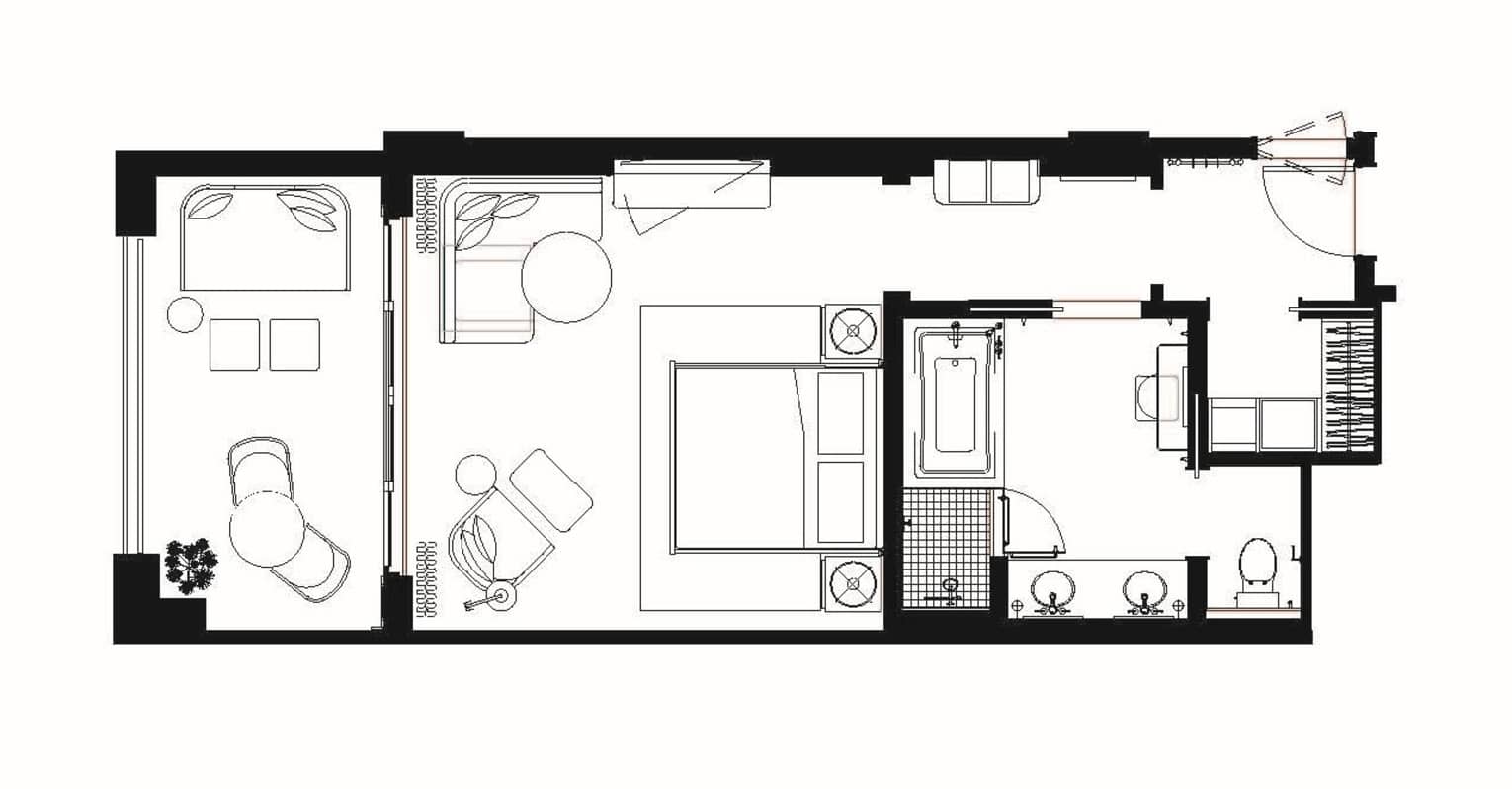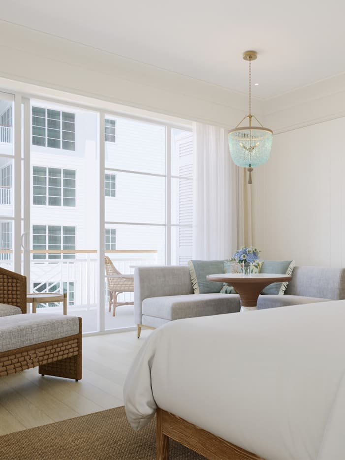 Welcoming with modern coastal luxury, this stylish guest room is spacious and serene. Enjoy seamless indoor-outdoor living with an expansive furnished terrace offering views of the Resort’s adjacent residences and grounds.