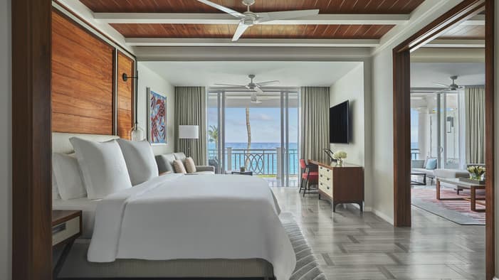 These one-bedroom suites are perfect as a romantic hideaway or a family home base. Separate from the king bedroom, the living room – with a queen sofabed and powder room – features sliding glass doors that open to the terrace or balcony with Atlantic views.
