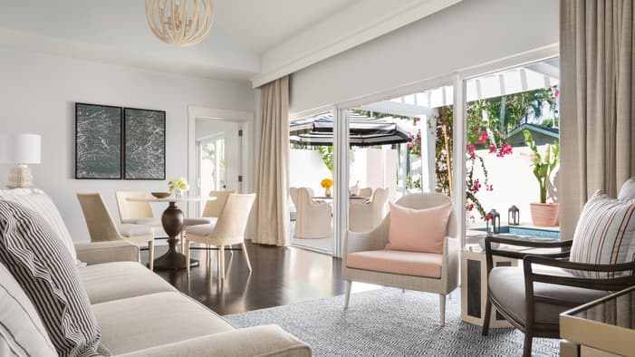 Nestled within tropical foliage, our renovated plunge pool bungalows are made for a private friends or family retreat. The living and dining area is enhanced by two bedrooms, each with its own bathroom. Bright and airy in design and spaciously appointed, French doors open to an enclosed courtyard with a plunge pool.