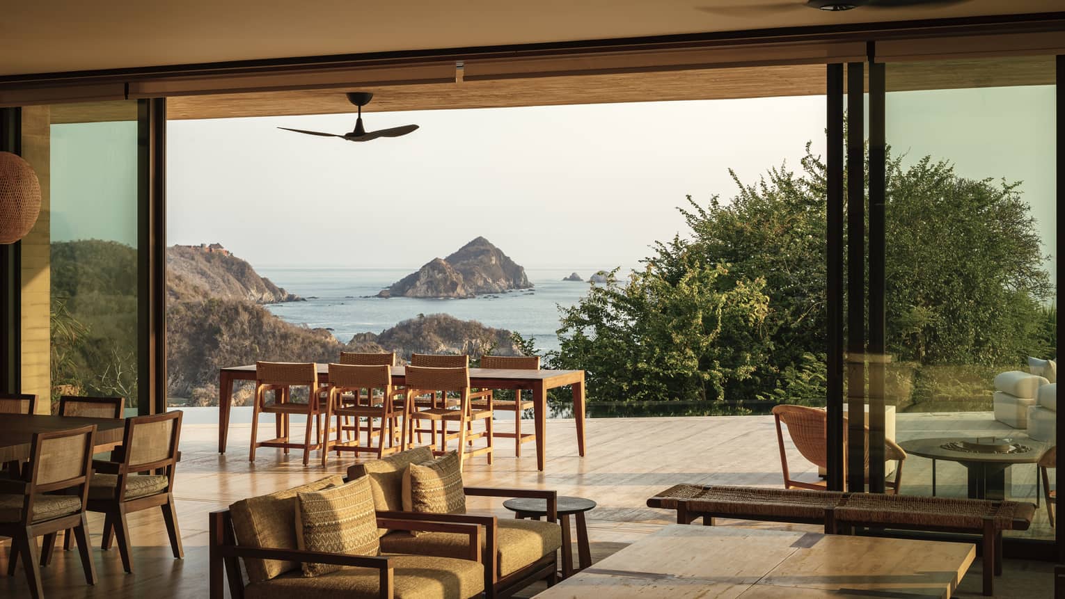 This villa offers the exclusivity of a private hillside home with a swimming pool, soaring wood-beamed ceilings, contemporary indoor-outdoor living spaces, and views to which you’ll never grow tired of awakening.