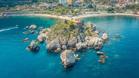 Just 2 kilometres (1.24 miles) from our Hotel, this iconic pebble beach and nature reserve is known as the Pearl of the Ionian Sea. Its crystal waters and rock formations make it ideal for swimming, snorkelling and photography. Reachable by taxi, cable car or an active walk, it features public and serviced areas, as well as a narrow path that connects to the island at low tide. Our Concierge can arrange private transportation or boat tours, including our signature Authentic Isola Bella Tour aboard a traditional Sicilian Gozzo, offering a two-hour journey to discover the area’s hidden gems.