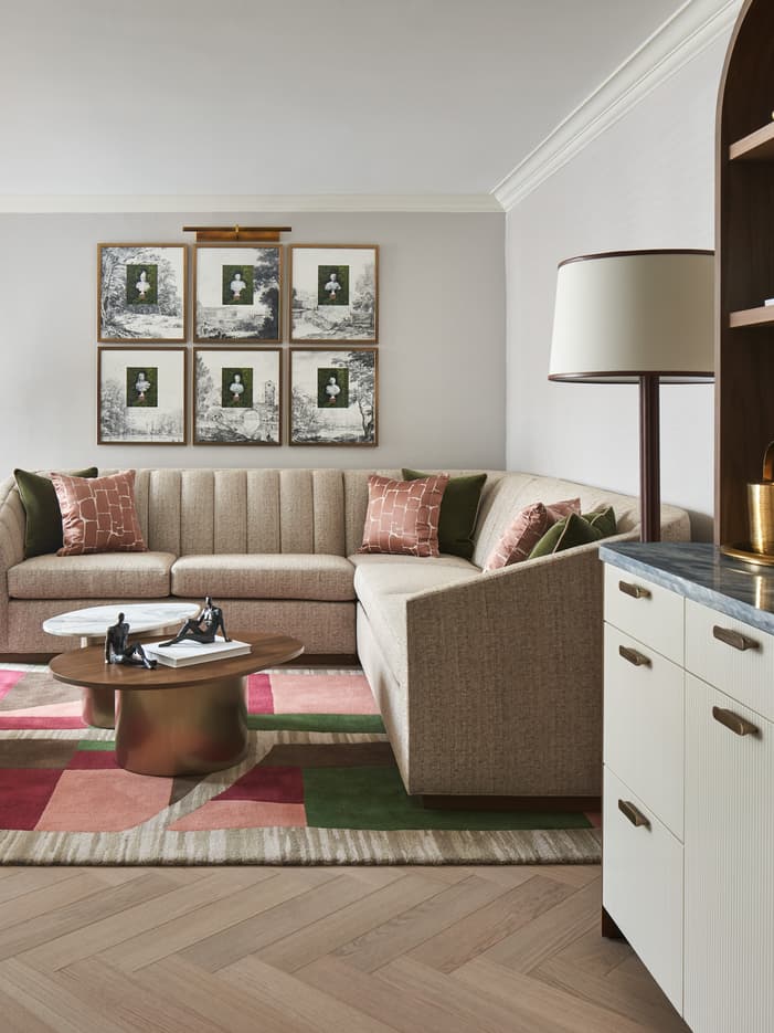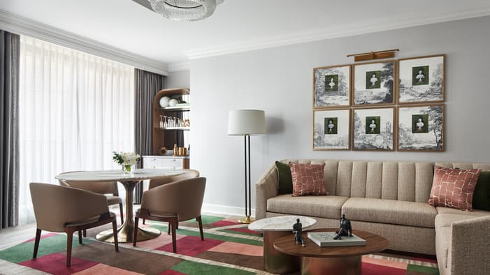 A residential-style suite with a generous walk-in closet and chic living room, perfect for work trips that extend to leisure time.