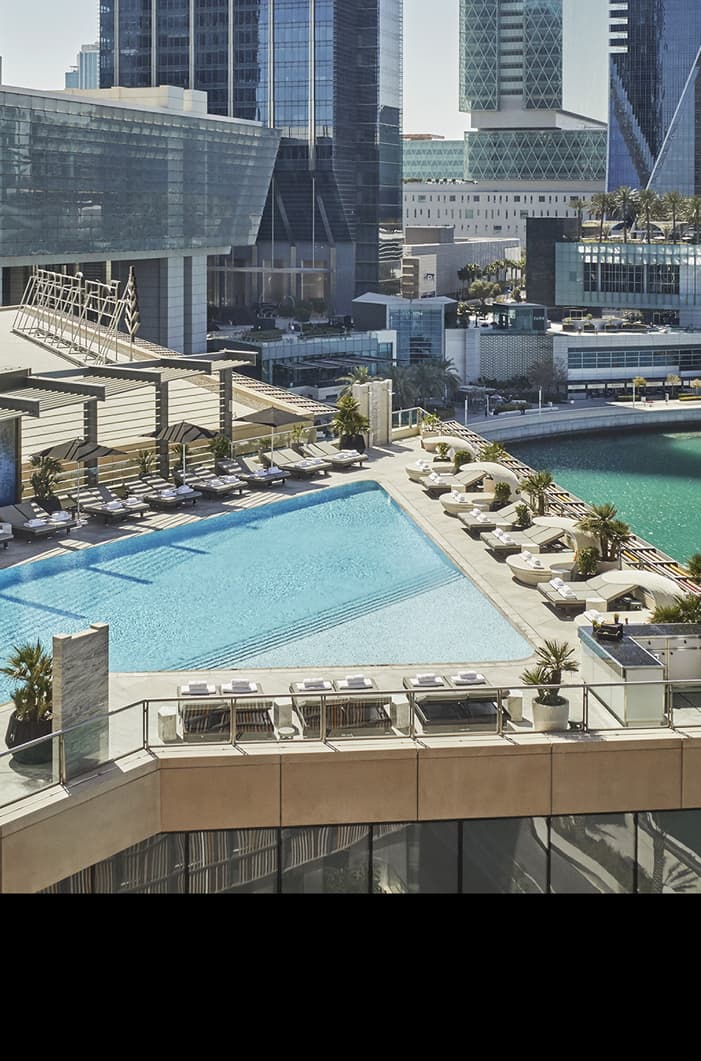Perched on a collection of more than 200 islands, our cinematic capital city isn’t afraid to stand out – and that’s just the way we like it. With its distinctive exterior of vertical lines inspired by the colourful textiles of the souks, you’ll find our 34-storey Hotel on Al Maryah Island a high-end playground for business, shopping and entertainment. Mingle with fellow travellers and stylish locals in our elegant Al Meylas lounge, find your bliss in The Pearl Spa & Wellness Abu Dhabi, or explore The Galleria – Abu Dhabi’s most refined new shopping centre – without ever having to step outside.