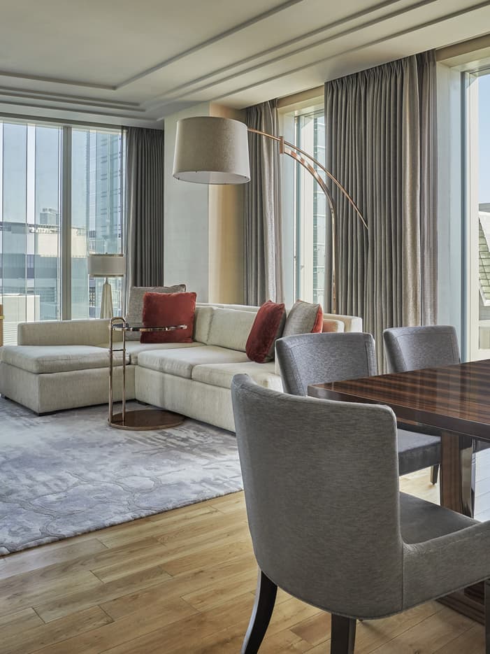 An abundance of natural light streams in the floor-to-ceiling windows throughout these spacious suites, which boast waterfront views and a dedicated work area that lets you take care of business.