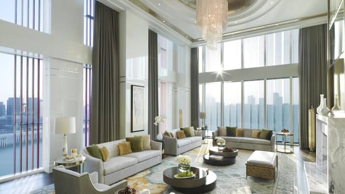 Unobstructed views of the city welcome you to our foremost VIP suite, where crystal chandeliers, hand-painted silks, exotic marbles and rich hardwood flooring create a sophisticated space that was made for entertaining.
