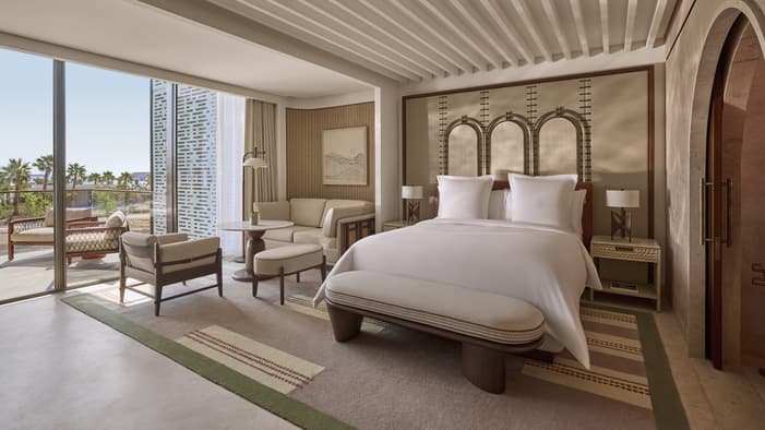 With a name inspired by the Arabic words for “hope” and “purity,” AMAALA reflects the destination’s founding vision to combine ultra-luxury travel with a commitment to wellness, cultural preservation and environmental sustainability. Adding to these advantages, AMAALA is considered the GCC’s only year-round resort destination, with moderate weather and an average temperature of +32°C (89.6°F) in the summer, with little to no rainfall. AMAALA’s premier community, Triple Bay, offers a collection of elite resorts on a pristine stretch of Red Sea coastline defined by three uniquely shaped bays. With Triple Bay’s longest stretch of beachfront, extending 900 metres (0.6 miles), Four Seasons spans 6.5 hectares (16 acres) and features a vast natural landscape with native plants, migrating birds and long walking trails for exploring. The design by acclaimed architects U+A reflects “palatial luxury touched by land,” blending grand Arabian tradition with sleek, modern style. Experience a new landmark of luxury framed by the foothills of the Hijaz Mountains and the pristine coast of the Red Sea.