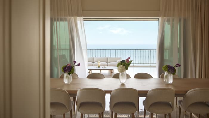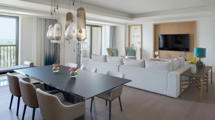 بفضل مساحاتها الواسعة وتصاميمها الراقية التي تُلبي احتياجات العمل والترفيه والاسترخاء، تُعد أجنحتنا الخاصة الفاخرة الخيار الأمثل للعائلات والمجموعات التي تبحث عن أقصى درجات الخصوصية والراحة. تمتزج الأناقة مع العصرية في تفاصيل الديكور، لتوفّر إقامة لا تُنسى على شاطئ جميرا، مع مفروشات فاخرة ولمسات عصرية تضمن لكم أعلى مستويات الراحة. دلّلوا أنفسكم بعلاجات سبا مُصممة للأزواج، أو استمتعوا بأوقات مميزة مع أحبائكم في مناطق حوض السباحة والشاطئ، حيث تُصنع أحلى الذكريات تحت أشعة الشمس.
