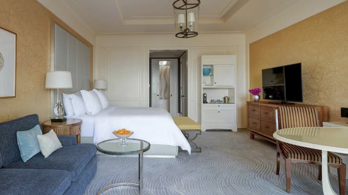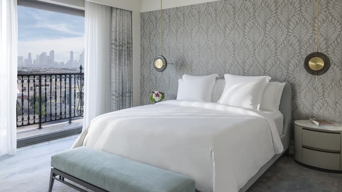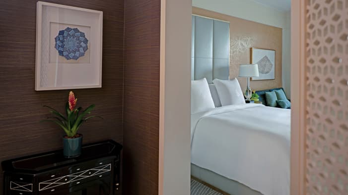 تُعد هذه الأجنحة الرحبة مثالية لِقضاء عطلات عائلية أو إجازات رومانسية للزوجين، حيث توفّر كل المساحات الإضافية التي تحتاجونها مع غرف نوم منفصلة ومساحات معيشة مريحة. سواء كنتم تستمتعون بالاسترخاء بجانب حوض السباحة مع أحبائكم أو بنزهة رومانسية عند الغروب، فإن كل لحظة في فندقنا الرومانسي في دبي مفعمة بتجارب لا تُنسى. كما تُطل أجنحتنا على مياه الخليج العربي المتلألئة أو على أفق دبي الساحر، لتضفي إلى إقامتكم لمسة من الفخامة والروعة.