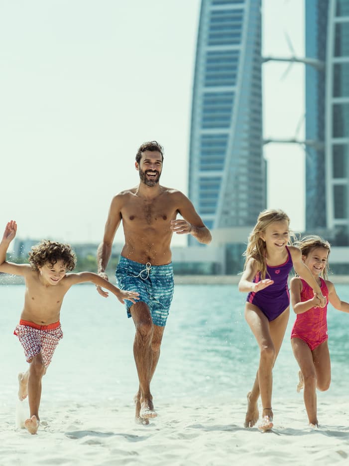 Discover our family hotel in Bahrain that offers childcare (for kids over 2 years) alongside a kids' waterpark; a teens' beach club featuring video and arcade games; and other family amenities like colouring books and toys. A pop-up tent can also be requested for a special in-room set up to create memorable moments. Be sure to enjoy our private white-sand beach, located just steps away, but if you’re in search of something different, opt for one of our spa treatments – we offer scrubs, facials and massages to suit every taste.