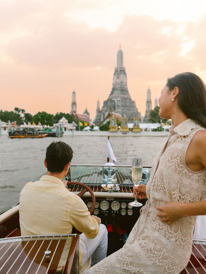 Bangkok Essentials Step back in time and explore the majestic Grand Palace, once the royal residence of the Chakri Dynasty, consecrated in 1782. Marvel at the blend of Thai and European architectural styles as you wander through this historical treasure. Discover the Emerald Buddha Temple, home to the sacred Emerald Buddha, and admire the Golden Chedi and the Pantheon of Chakri Kings. Then hop aboard a tuk-tuk to Wat Pho, home to the Reclining Buddha, before crossing the Chao Phraya River to visit Wat Arun, the Temple of Dawn, a riverside landmark known for its stunning spires and intricate design. Learn More