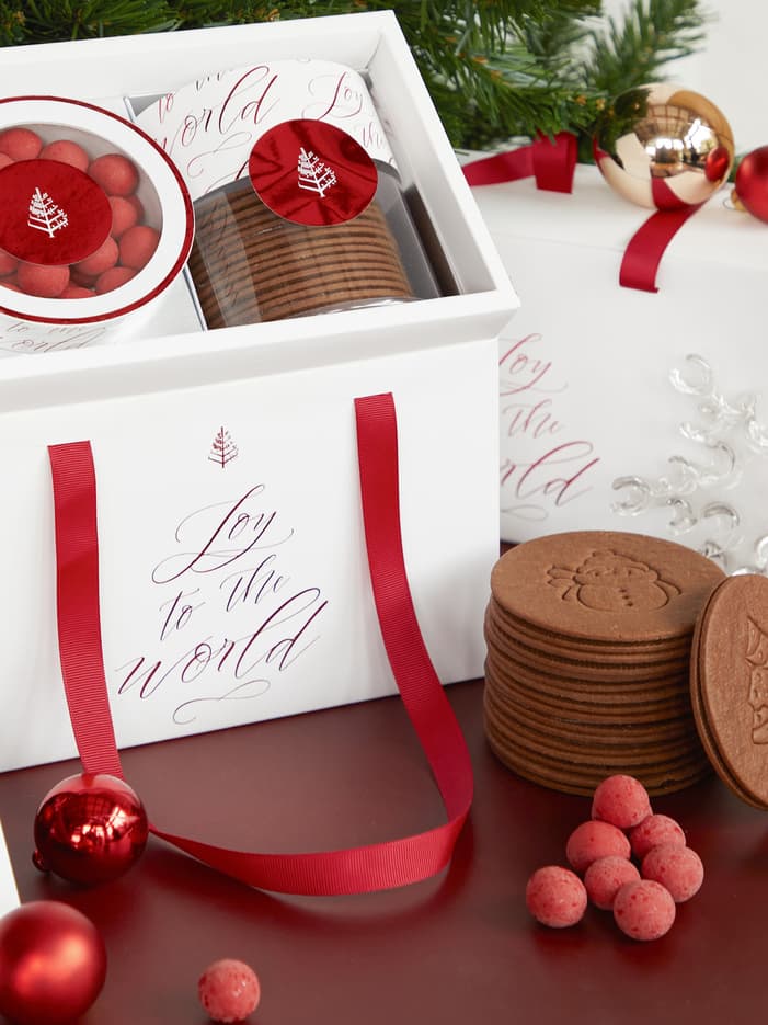 A festive hamper is sure to impress and delight this holiday season. Choose from our range of gourmet cookies, jams, chocolates, champagnes and wines to create your own hampers for friends and family. Available beginning December 1.
