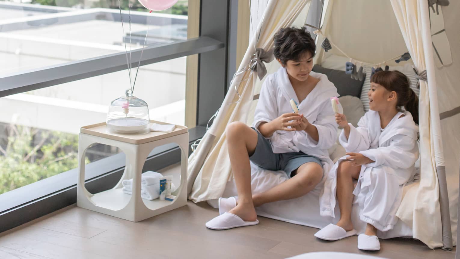 Our in-room comforts help kids settle in when travelling away from home – from a cuddly Chao Plai elephant mascot to a cozy tent experience on request.