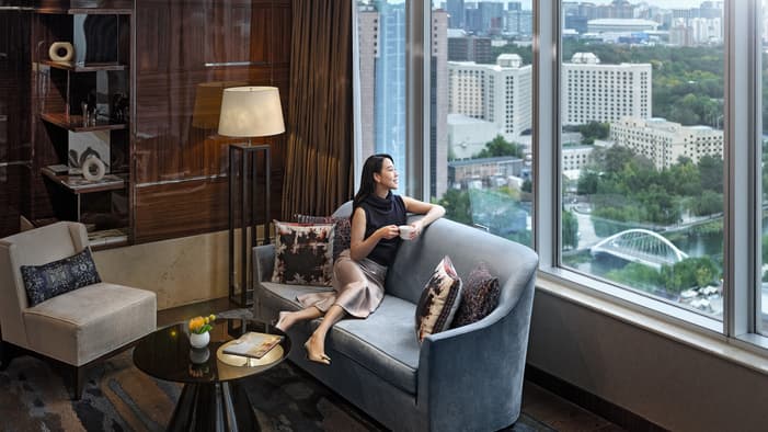 Known as the “Palace in the Sky,” this three-bedroom, ultra-luxe suite takes up our entire 27th floor. Screen a movie in the media room, entertain on the rooftop terrace, and watch a private chef prepare a meal in the open kitchen for a special evening. Custom finishes, original artwork and panoramic views of Beijing are the proverbial icing on the cake.