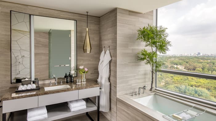 Discover unparalleled luxury at Four Seasons Hotel Bengaluru at Embassy ONE. Embrace the cosmopolitan spirit of Bangalore in our opulent suites and rooms, blending indoor-outdoor spaces with lush greenery and panoramic city views. Experience exclusive amenities, personalized service and innovative technology in an elegant setting. The prestigious Presidential Suite offers unmatched luxury for an extraordinary stay. Perfect for discerning business travelers and vacationers, our Hotel epitomizes sophistication and comfort.