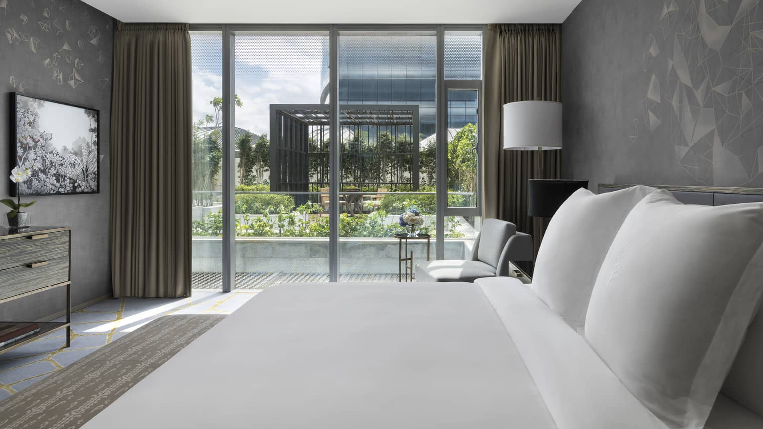 Offering extra space and privacy, these corner suites are ideal for an extended business stay or a special family getaway. Floor-to-ceiling windows bring in stunning garden views to soothe, refresh and inspire city dwellers.