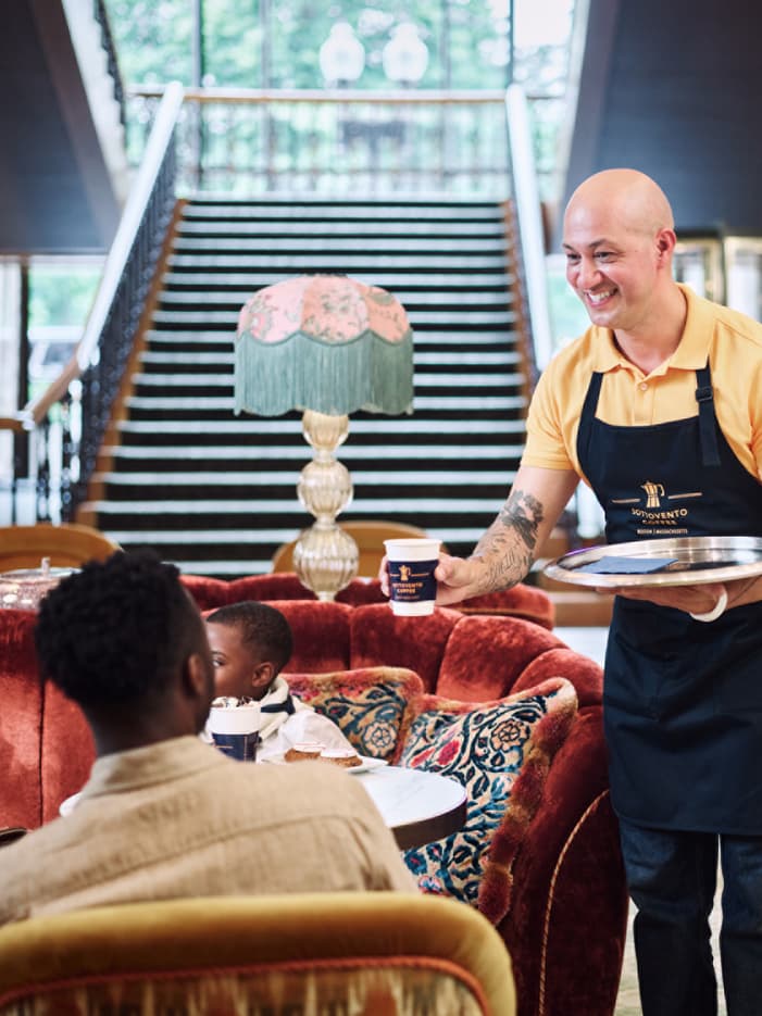 Start your morning with a handcrafted espresso or coffee in our lobby coffee shop, with our complements.