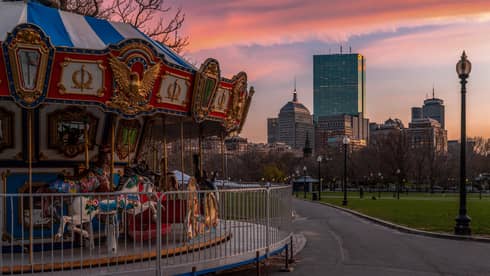 Relish in the history and attractions of America’s oldest park, the Boston Common, founded in 1634. Stroll the tree-lined paths and visit the Frog Pond that functions as a spray pool in the summer and an ice-skating rink in the winter. Have fun at the nearby playground and vintage carousel.