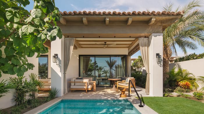 With a spacious living room for relaxing, our one- and two-bedroom Cabo Del Sol suites are available in both La Casona and the Casitas – and many include a plunge pool. Our casita suites feature both indoor and outdoor showers and sweeping ocean views.