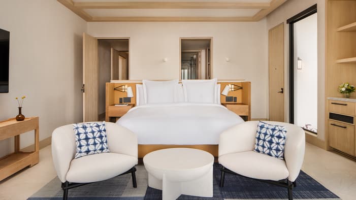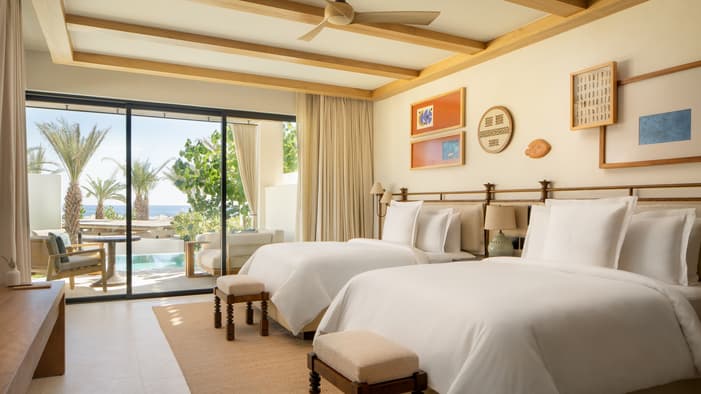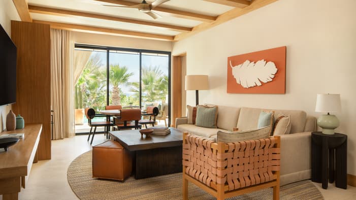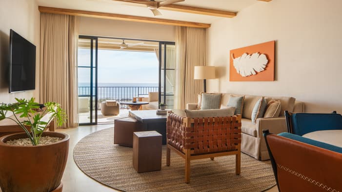 Inspired by Cabo’s Spanish architecture, Mexican artistry and stunning ocean views, our luxury accommodations at Four Seasons Resort Cabo Del Sol combine natural materials, local artwork and a minimalist palette to create a relaxing retreat where modern comfort meets the warmth of Mexican hospitality. Each space is thoughtfully designed to bring the outdoors in, offering spectacular views and spacious layouts rooted in Baja’s vibrant culture.
