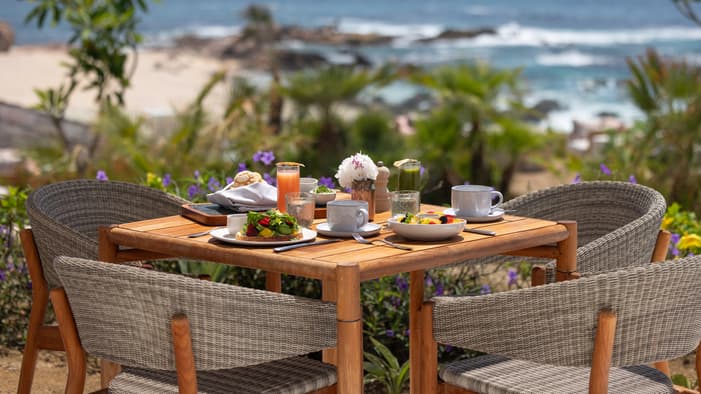 Our Resort offers couples an exceptional blend of intimacy, flavour and setting through its romantic Cabo Del Sol fine dining experiences. From a private beachfront dinner under the stars with the sound of the waves as your backdrop to a Mediterranean-inspired evening at Palmerio with ocean views and elegant plates, every moment is designed to inspire connection. At Cayao, bold Nikkei flavours are served in a striking oceanview setting for an elevated and adventurous dinner for two, while Sora Rooftop Bar invites couples to unwind with handcrafted cocktails as the sun sets over the Sea of Cortez, creating a variety of unforgettable moments that define a perfect Cabo retreat.