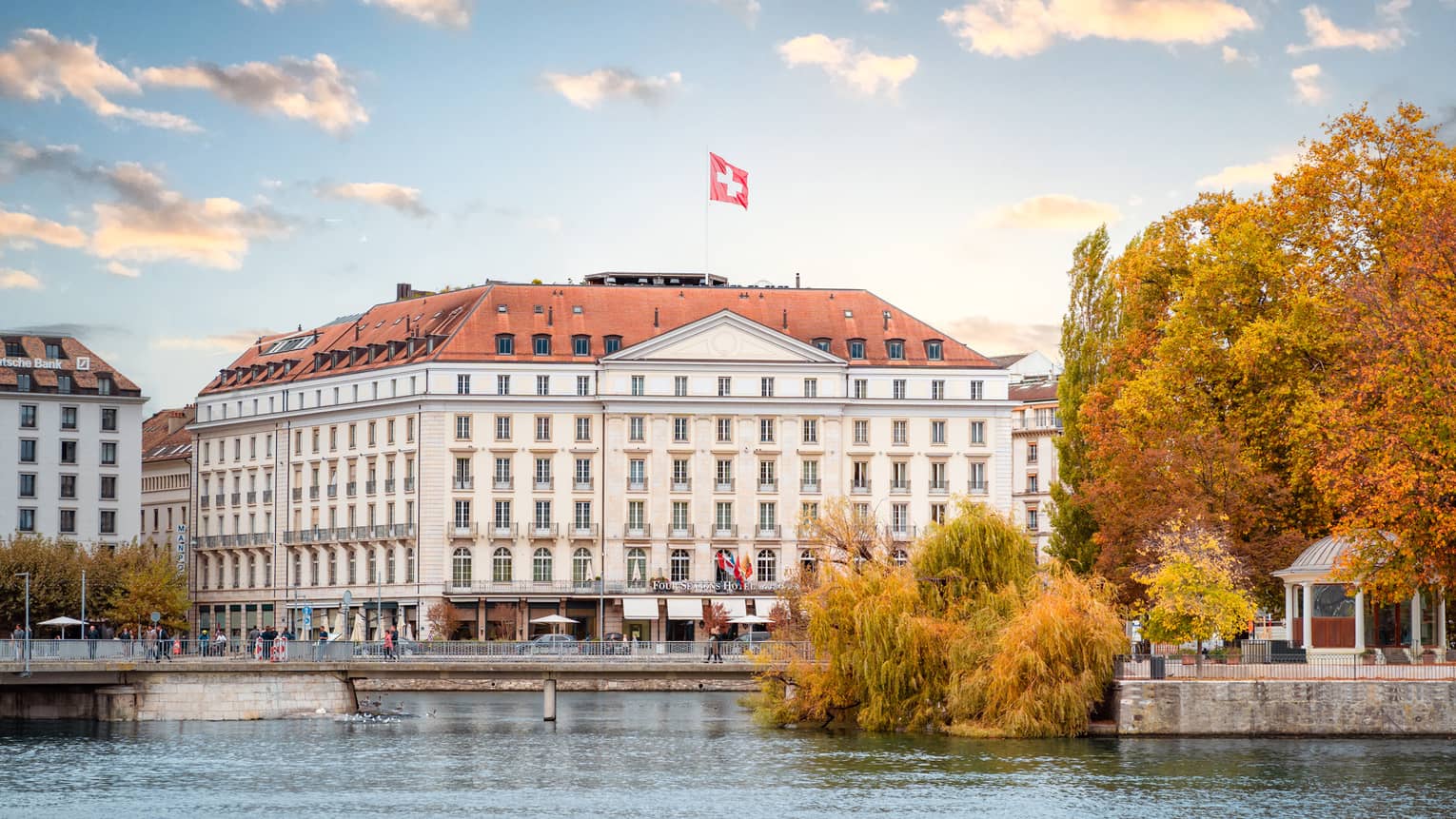 A landmark on Lake Geneva with enchanting views of the lake and the snow-capped Alps.