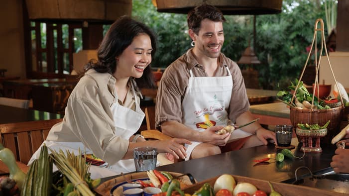 Designed by renowned architect and landscaper Bill Bensley, our restaurant and cooking studio is where our Chiang Mai cooking classes take centre stage. Housed in a charming Thai teak house, this culinary destination celebrates traditional Lanna elegance.2 / 5