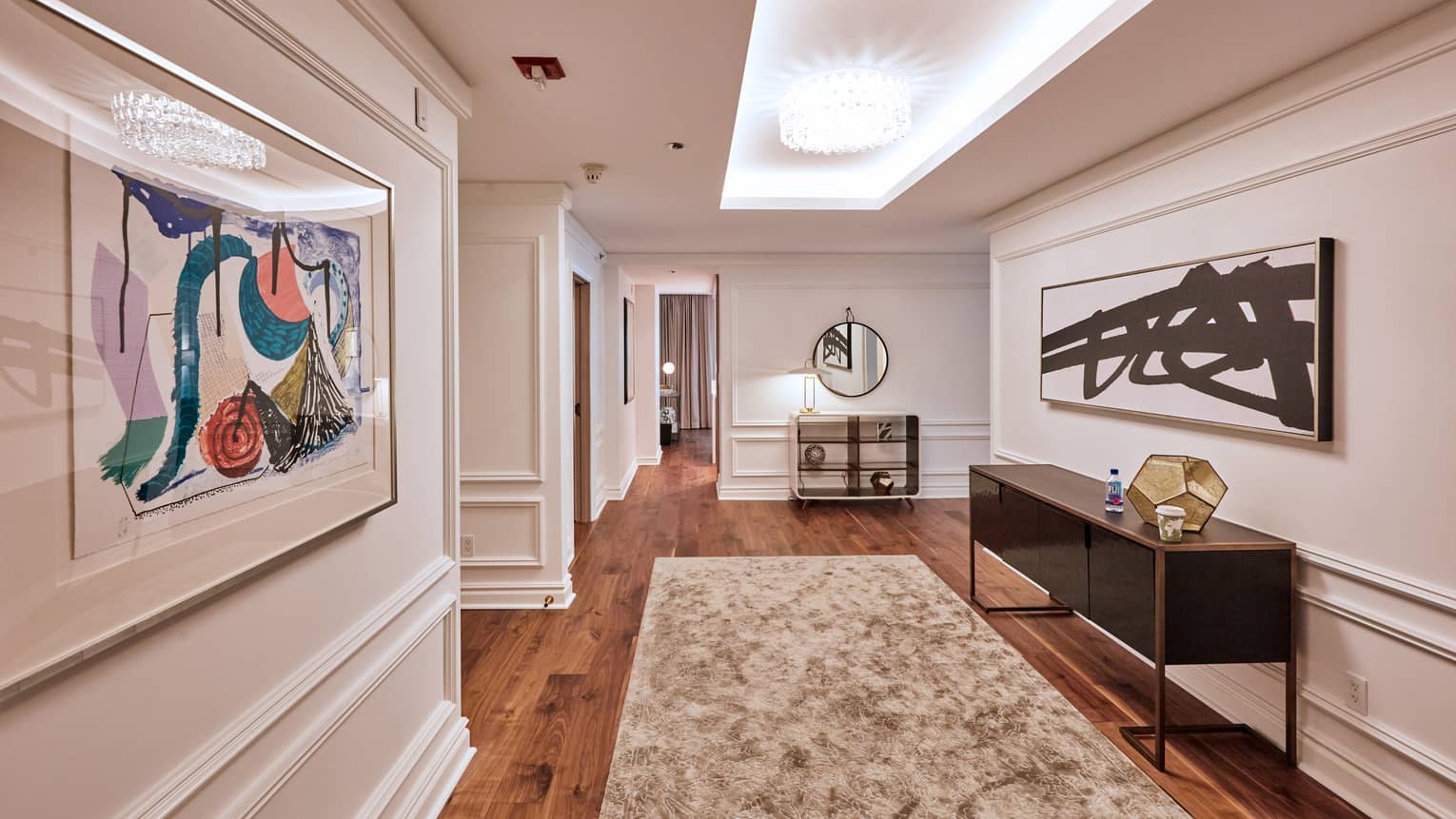 Designed by Rottet Studio with the intention to adapt to any guest, our Presidential Suite is a truly remarkable home away from home for families or couples seeking extra space. Perched on the 46th floor, the newly reimagined suite boasts a flexible room that is completely customizable. From a private fitness room to play area, this contemporary space can be configured to suit your needs and interests.