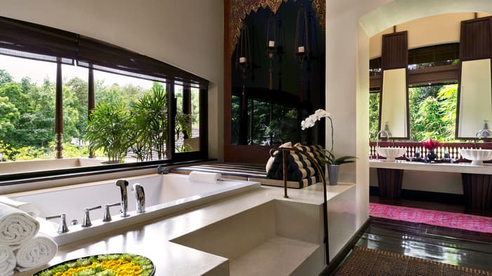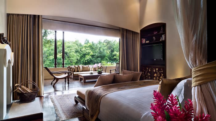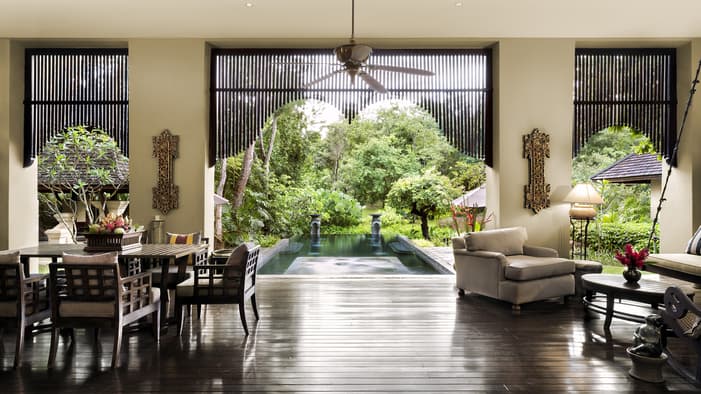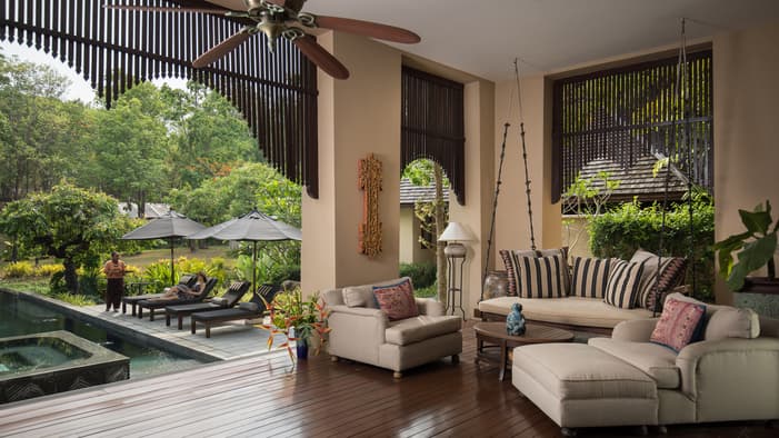Eigentümer-Residenz-PackageUnsere Eigentümer-Residenz mit vier Schlafzimmern definiert Luxus völlig neu. Zusätzlich zu den beeindruckenden Annehmlichkeiten, die Sie bei Ihrem Aufenthalt in dieser Villa erwarten – wie einem eigenen Pool, einem Whirlpool und den schönsten Panoramablicken im Mae Rim-Tal – umfasst unser exklusives Package eigenes Hauspersonal mit Koch, kostenfreie Resort-Aktivitäten, Flughafentransfers und vieles mehr.