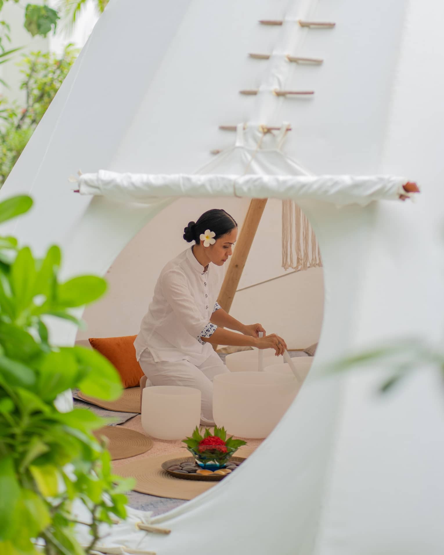 Spüren Sie in unserem 5,5 Meter Heilungszelt das wohltuende Gefühl, wirklich die Seele baumeln lassen zu können. Wir bieten Ihnen einen nährenden Raum für eine intime Verbindung mit der Natur, dem Wissen der Vorfahren und Ihrem ganz eigenen Wesen.4 / 4