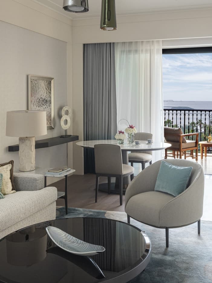Lead meetings in the living area or enjoy a quiet moment on the balcony’s plush daybed in these comfortable suites, ideal for longer stays.