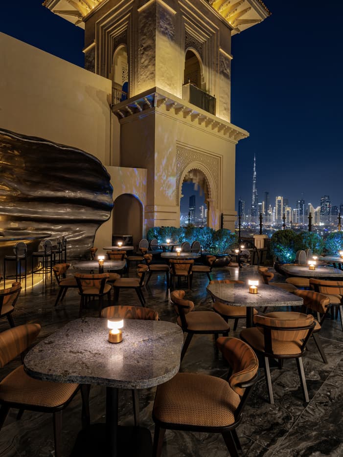 Rise into an evening where flavour outshines the stars. Savour four curated courses, set to the sounds of live music and a sky full of possibility. AED 395 soft beverages; AED 595 house beverages; AED 795 champagne.